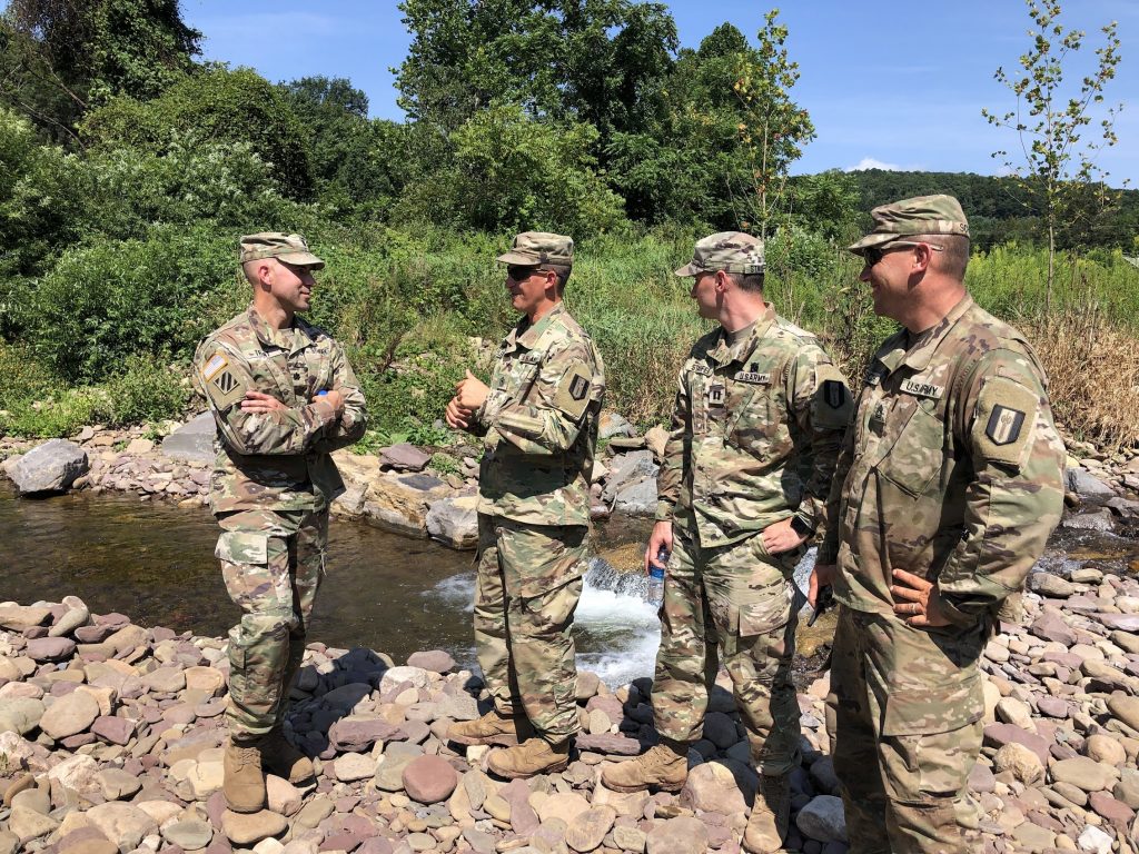 The 333rd Army Reserve Engineering Company has been busy over the last 2 weeks at Plunketts Creek. The soldiers are working with the Pennsylvania Game Commission and Northcentral Pennsylvania Conservancy on a project to reconnect Plunketts Creek to its floodplain at State Game Lands 134. An earthen berm was used in the past at the site to protect the birds being raised by the Game Commission when the site was a propagation farm.