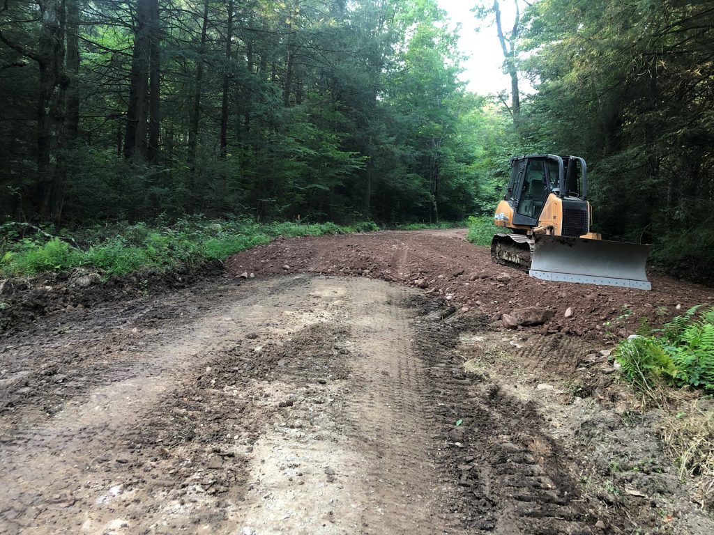 Camp Mountain Road has become entrenched, the driving surface of the road is lower than the berm along the side. On dirt and gravel roads it’s especially important to let rain and snow melt drain off the road not run down the road. As water runs down the road it picks up more sediment. The sediment can wash into streams resulting in water quality problems. By bringing the driving surface back up and adding drainage the road will have less impacts on water quality and people using the road will have a smoother trip.