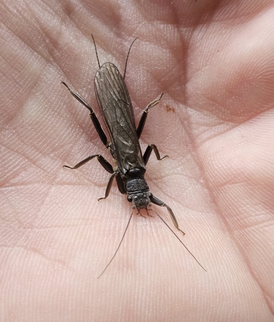 Stoneflies are commonly found in running waters, clinging to boulders, cobbles, water-soaked wood, and leaf packs. Most species are either predators or shredders, feeding on decaying plant material. The presence of stoneflies indicates excellent water quality. However, their absence does not always mean pollution; it could just mean the specific habitat conditions they need aren’t present. In low-oxygen conditions, stonefly larvae do “push-ups” to move water across their gills!