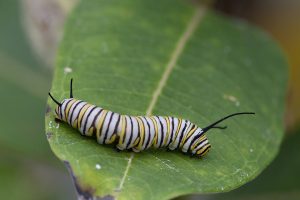 • Some adult Monarch butterflies are taking wing, while their caterpillars are still feeding on the leaves of milkweed plants.   A female monarch will only lay her eggs on one of the many varieties of milkweed. Here in Pennsylvania, the native varieties include common milkweed, ornamental milkweed and swamp milkweed. Native milkweed species are the only plant these caterpillars will eat.