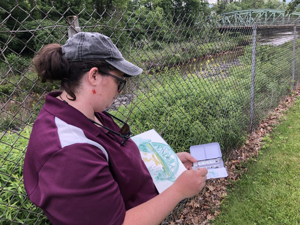 In June, artist Bibi S. Brion led an Urban Sketch Workshop, where participants used pencil and watercolor to capture Blossburg’s buildings and scenery. Later that month, families joined a Cookie Mining activity, using chocolate chip cookies to explore land use and mine reclamation in a fun, hands-on way. The month wrapped up with a Tie-Dye Party at the library. Guests dyed shirts using pigment made from iron oxide collected from AMD, turning pollution into wearable art and sparking conversations about the river’s challenges and restoration.