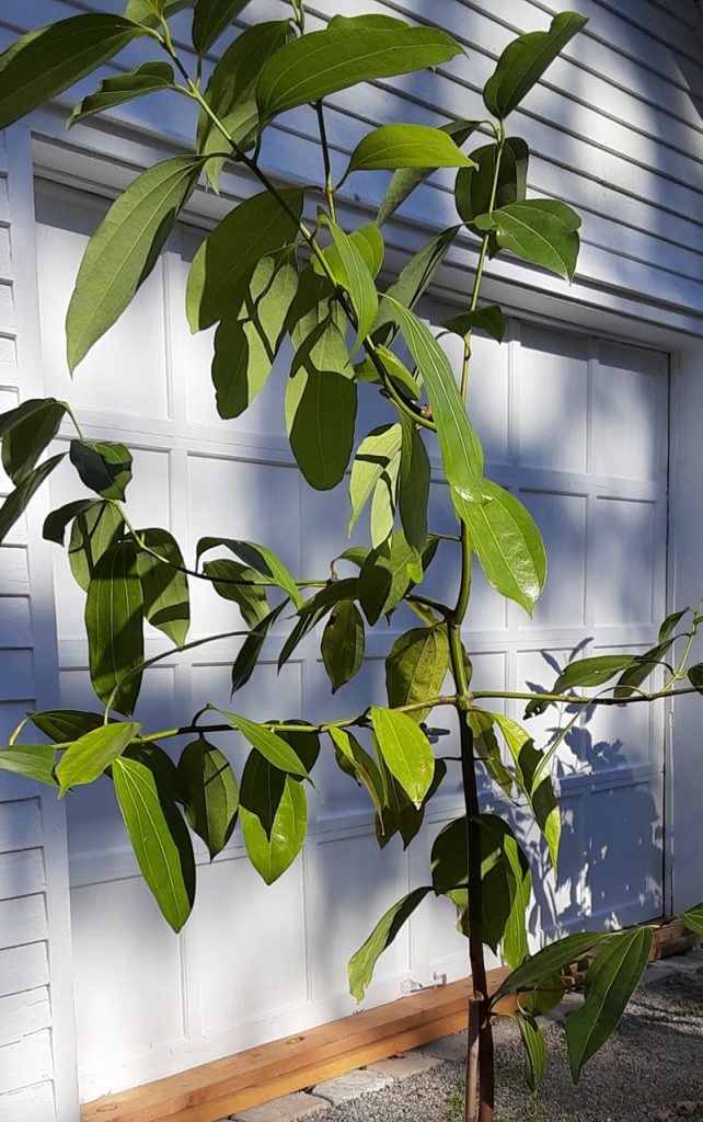 My Ceylon cinnamon tree (Cinnamomum zeylandicum) and my allspice tree (Pimenta dioica) are tropical trees that live in my backyard during the warm months and inside the house the rest of the year. They are taller than I am, so the photos show their long, shiny, evergreen leaves instead of the whole tree. Cinnamon is a member of the Lauraceae Family like sassafras and bay leaves. Allspice is a member of the Myrtaceae Family like eucalyptus. Cinnamon can grow from 20 to 60 feet. I will definitely be keeping mine trimmed down to a manageable size. Some people are so surprised to find out the cinnamon powder is made from the inner bark of this tree, after it is striped off, bundled and allowed to ferment. The outer layer of bark is then scraped off and the inner bark is rolled into quills and allowed to dry. It is the second most popular spice in the USA, after black pepper. My allspice tree is native to the West Indies. Our ground allspice is made from the small green fruits that are picked in mid-summer and dried by the sun or in ovens. Its name reflects the fact that it has the aroma and flavor of nutmeg, cinnamon, and cloves combined.