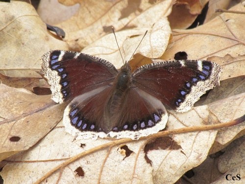 Soon they will emerge, the first butterflies of the year – the mourning cloaks. Occasionally there may still be patches of snow in shady areas, but on warm days of early spring mourning cloaks will emerge from hibernation. These are the only butterflies in our area that actually hibernate as adults, spending the winter in tree cavities or beneath loose bark. Mourning cloaks mate in spring after which the females lay their eggs on the host plats on which the larvae will feed – willow, wild rose, hawthorn and a number of other species. After the larvae have matured, they pupate, transforming into adult butterflies which emerge in June and July. The adults estivate (which can be thought of as summer hibernation) and emerge again in the fall to feed and store energy for winter hibernation. When the mourning cloaks emerge we know spring has arrived.