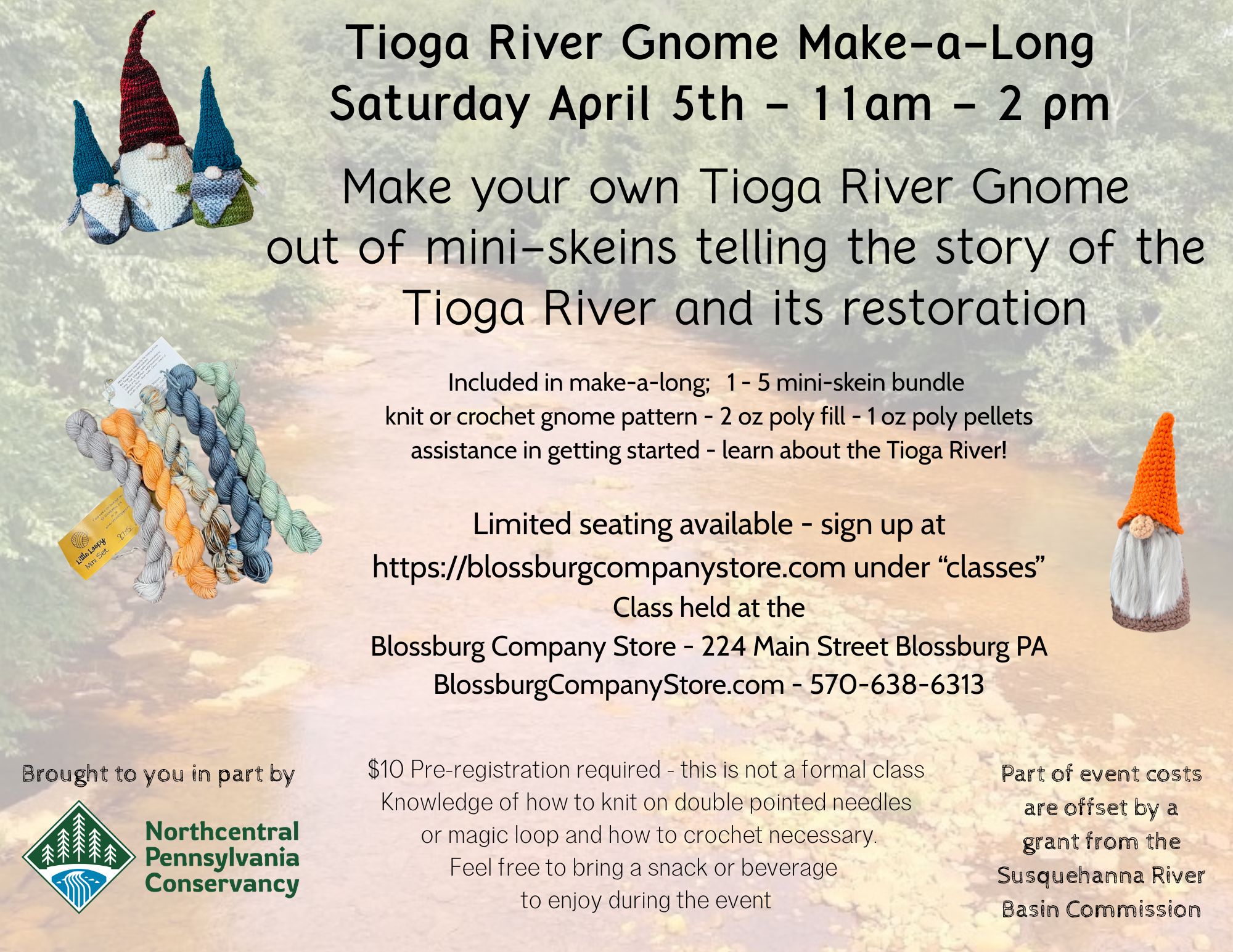 4/5/25 – Tioga River Gnome Make-a-Long (Part of the Rivers, Coal & Crafts series!)