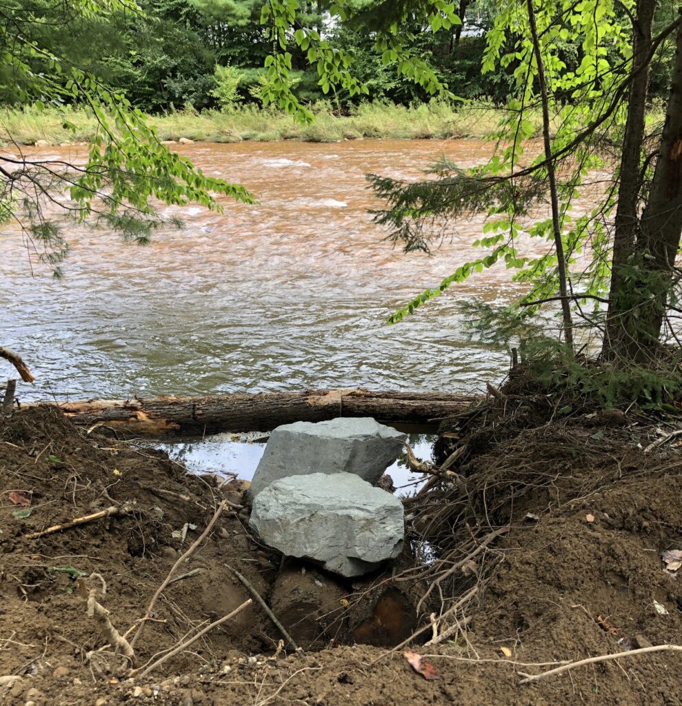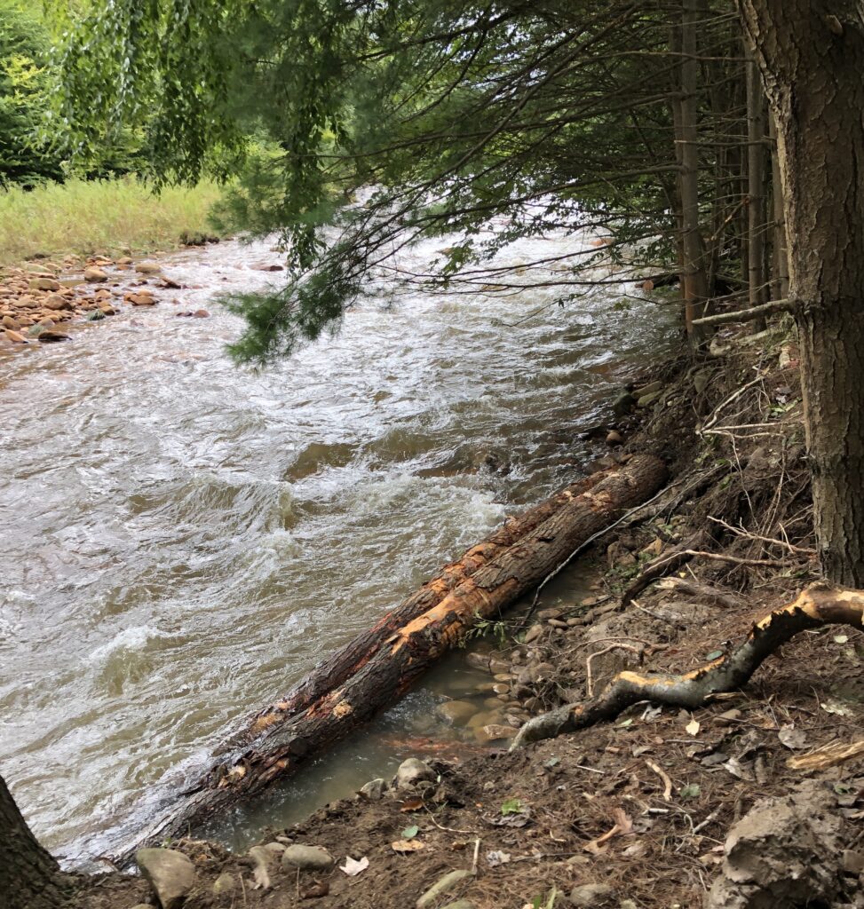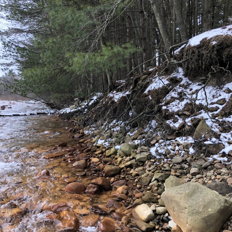 Staff from Trout Unlimited (TU) and the Tioga County Conservation District evaluated the site for potential stabilization and fish habitat in November 2022. During the site visit the group determined that Pennsylvania Fish and Boat Commission approved fish habitat enhancement structures could be used to stabilize the eroding riverbanks while also improving habitat for fish and other aquatic life.