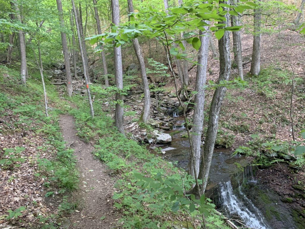 After soaking up your views from the top, complete the loop by following the orange blazes.  During this second half of the hike, you’ll cross back over a different section of Butternut Run, travel through several glades, passing more wildflowers and streams along the way!