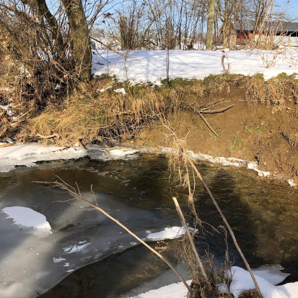 Winter can be a great time to visit potential stream projects. With no leaves on the trees and other vegetation dead or dormant it’s easier to see the streambanks and what’s going on. Snow on the ground or ice on the stream stop the visits.