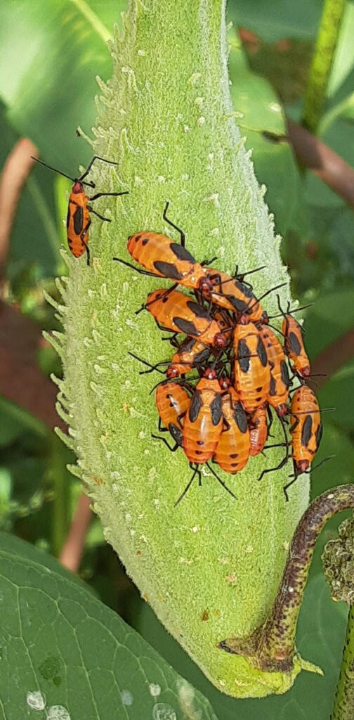 Sometimes Boxelder Bugs are confused with the Eastern Milkweed Bugs that are reddish-orange and black in color. They are true bugs, too. Get yourself a bug book and check them out!