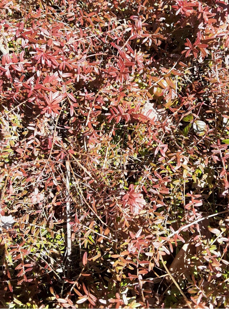 Wild cranberry plants with leaves that will green up as spring proceeds