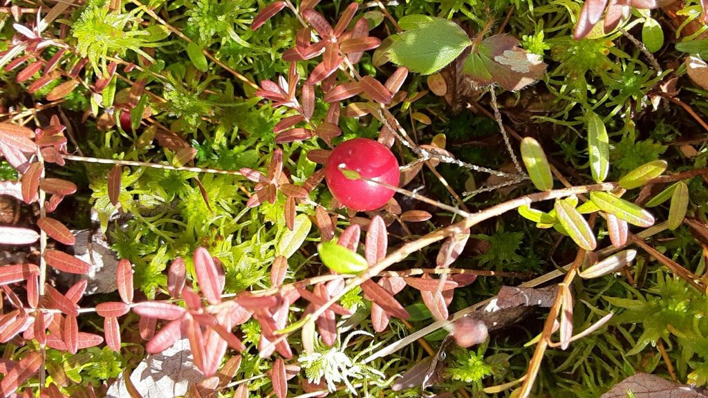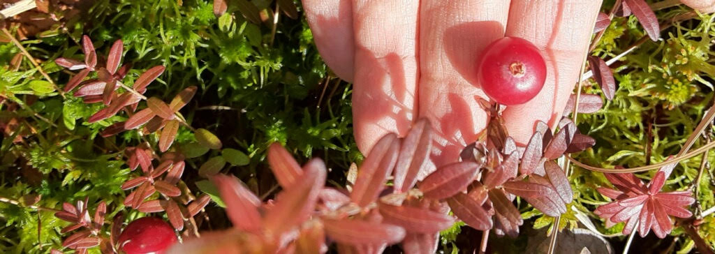 Why did I never notice them growing there before? I think they kind of blended in with the sphagnum mosses and dewberries trailing over the ground there. And they do trail, their wiry stems forming dense masses. Cranberries have small oval leaves growing along stems that spread horizontally for a bit, then curve upward. Their tiny flowers with four backward pointing petals open in late June to form a pinkish-white carpet, ready for pollination by bees, and to create fruit ready for picking in September through November. Also in late summer, new terminal buds begin to form for next year’s crop of berries. They will require a period of dormancy in order to successfully produce flowers and fruit. They must undergo a sufficient period of cold temperatures and short daylight hours called “chill hours” during the winter months in order to break dormancy and open in mid-summer of the next year to start the blooming process all over again. If you count the months, you will see that it takes them from fourteen to sixteen months to produce berries. Hopefully the geographical range where the optimal conditions occur will not shrink due to climate change!