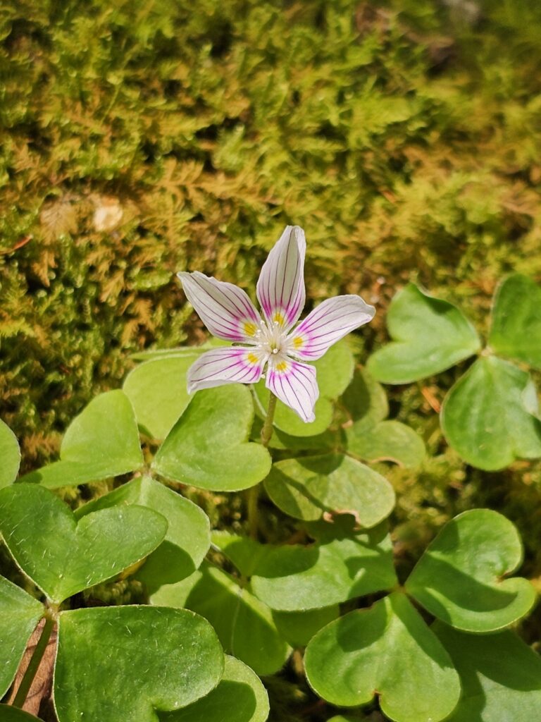 Mountain Wood Sorrel is easily recognized by its shamrock-shaped leaves.
