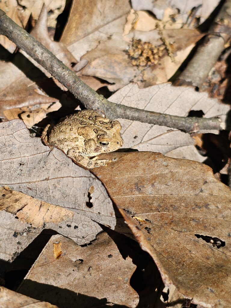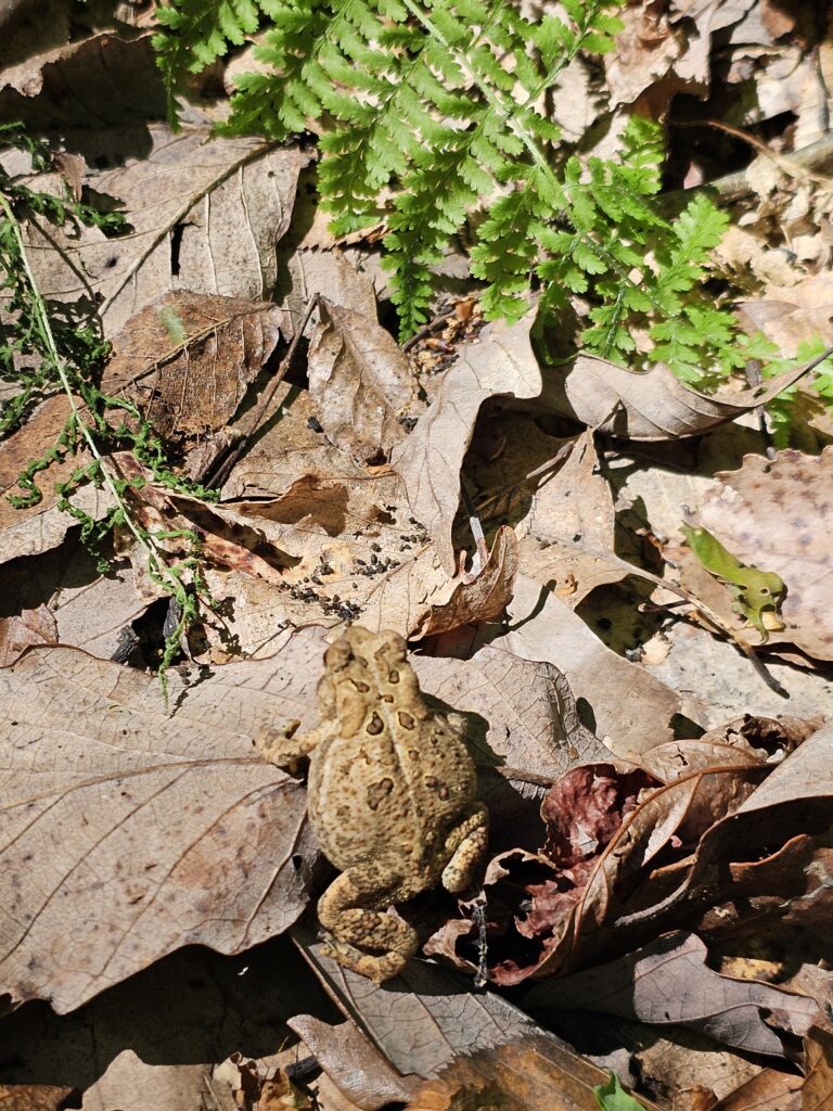 The American Toad is the most common toad species in Pennsylvania, occurring in all 67 counties. They primarily nocturnal, spending most of their day hiding under leaves and rocks and can often be found near sources of water during the spring mating season.