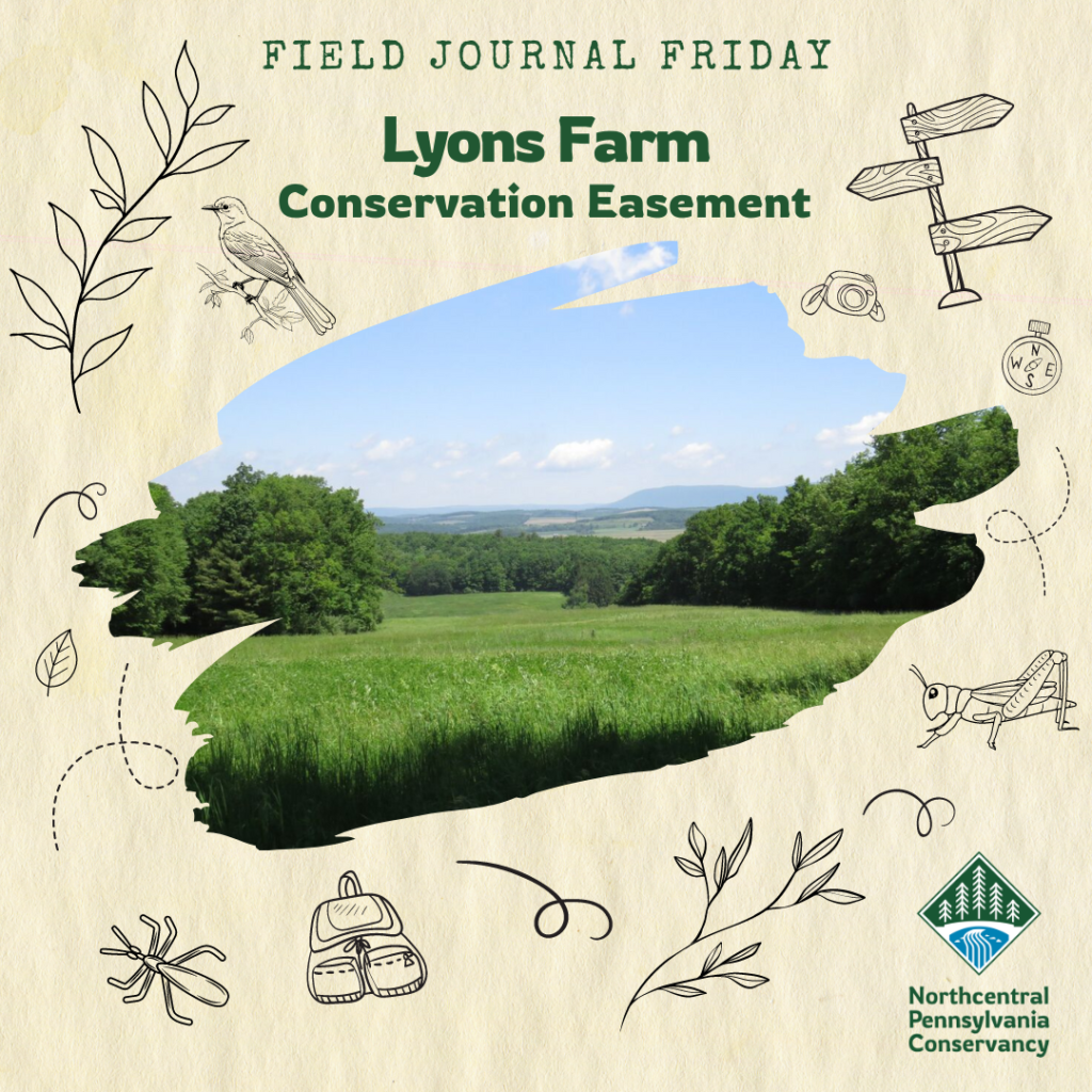 NPC’s Lyons Farm conservation easement helps conserve a variety of natural values – from stream health, to field and woodland habitat, and 20-mile panoramic views! It is a real gem spanning 125-acres in Lycoming county, connected to State Game Lands 226 and NPC’s Joshi conservation easement (more on that visit next week!).