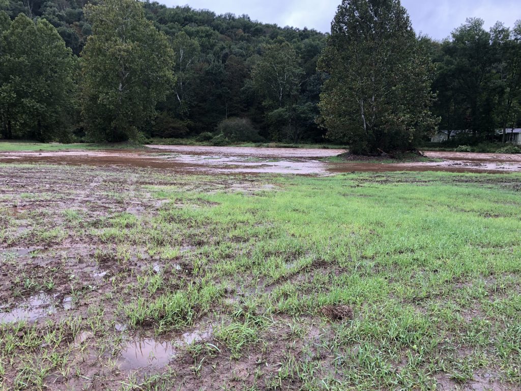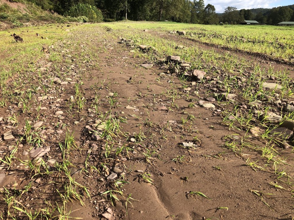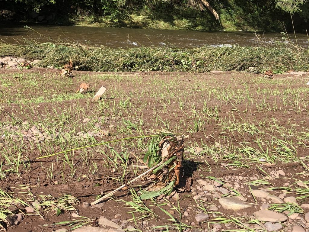 This is the same areas as the flood photos above. You can see the sediment that was dropped in (it looks more sandy here than soil-y) and the grass is knocked over. (This was another exciting scene for NPC staff.)