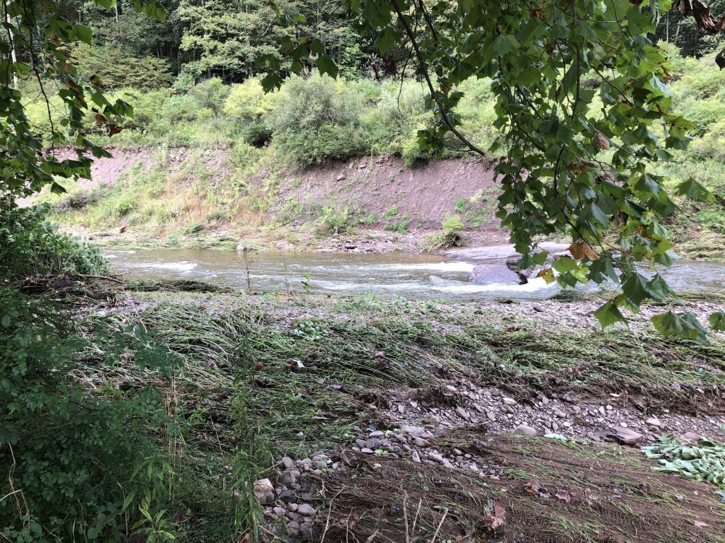 The Friday after Ida moved through (Friday, September 24, 2021) NPC staff went to visit the Plunketts Creek site. Not just because it was a beautiful morning, but because we wanted to see what Plunketts Creek did and where Plunketts Creek went with all the rain.