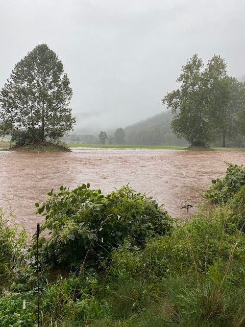 This is looking at the same trees in the first “flood photo” from a different direction. The flood water is pushing out of the Creek, between the trees, and into the field.