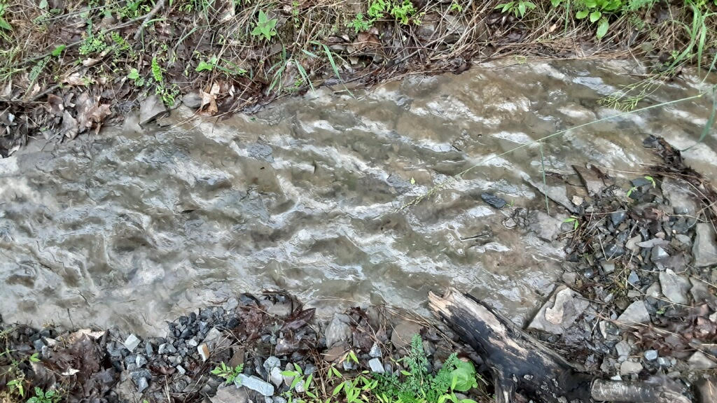The rain must have really been pelting down to clear out a ditch on the road’s edge and reveal what appeared to be fresh wave-like mud bumps alongside it. Wow! On closer inspection, those riffle marks I photographed were not laid down recently. They are ancient rock-hard shale built up over millions of years and lifted high by collisions of the continental plates to create our endless mountains.