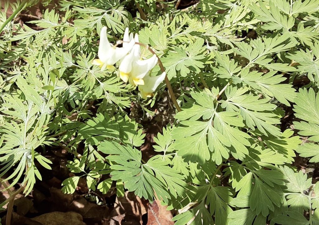 Above a puddle of grayish-green, deeply-cut, and feathery basal leaves, you may see an ersatz clothesline stem of creamy white flowers that appear like pairs of pantaloons hung up to dry. This unique plant of the Poppy Family, Papaveraceae, is Dutchman’s Breeches. Common names come into popular usage because they reflect the looks, use, or habitat of a plant. This one certainly fits!