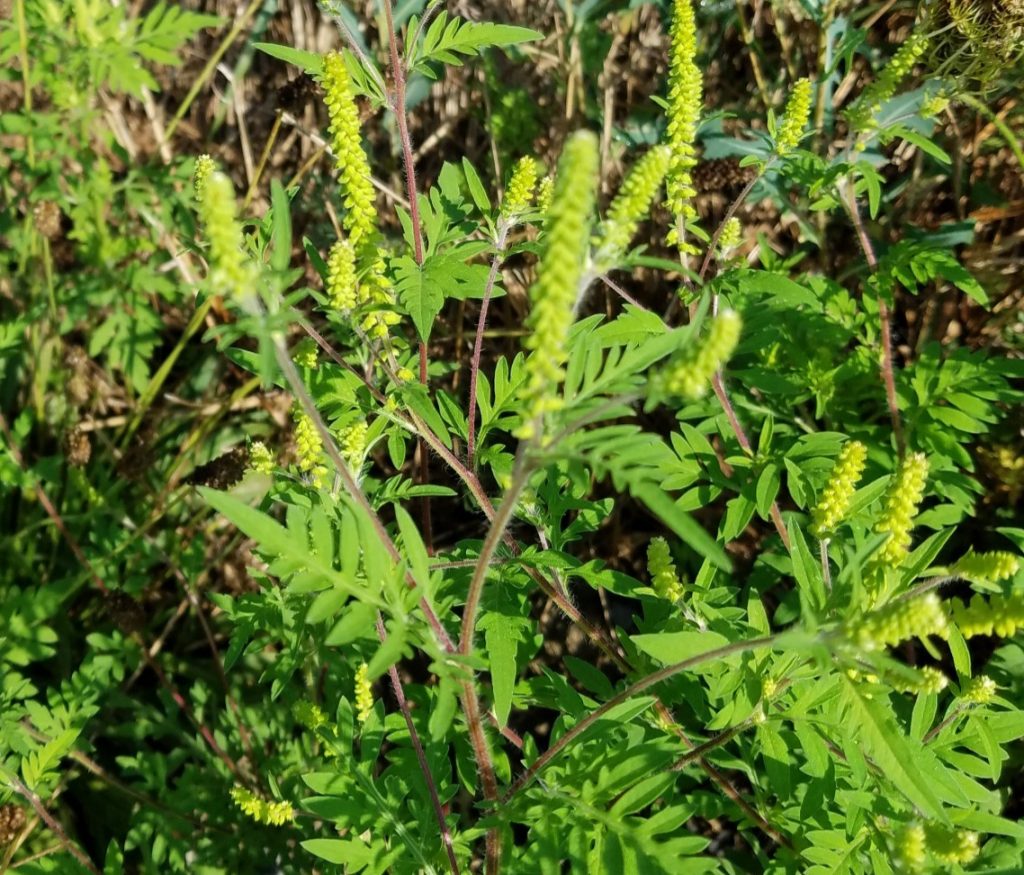 Goldenrod pollen is round, smooth, and dispersed by rainfall, so it doesn’t travel far. If you are in the 10 – 20 percent of people who suffer from Ragweed allergies, you may want to check your property for the plant. Look for its toothed leaves low to the ground or a mature plant over three feet tall. Wear a mask when you cut it down. Gloves and social distancing may be appropriate, too, as it can cause contact dermatitis!