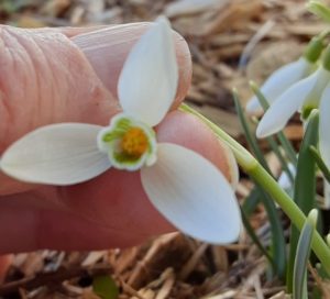 So we said that last week’s issue would be it for a short while….but today’s snow fall inspired one more botanical treasure to share: Snow Drops! Because, in the words of Susan, “Once the snow is gone, it won’t be as much fun to read about them!”. 🙂