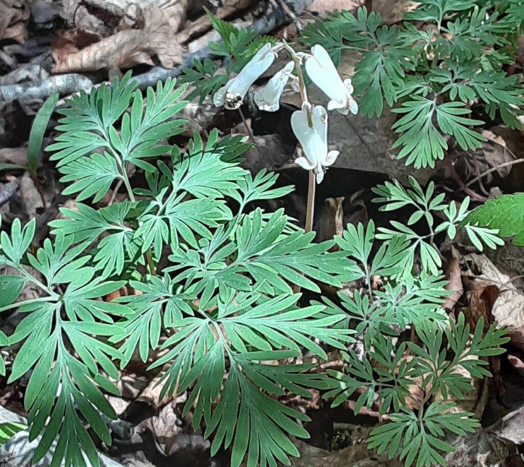 All parts of Squirrel Corn are poisonous and can cause skin irritation after contact with cell sap. In fact, after I dug around to check the roots, my fingers itched for a bit. Hand sanitizer helped with that. (Silver lining of the Covid cloud…we never used to carry it in the truck before!) These plants are native from southeastern Canada down through northeastern and eastern United States. They attract butterflies and bees, songbirds and small mammals (squirrels?). They appear to be resistant to deer and rabbits.