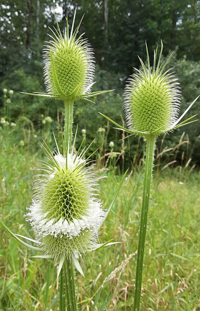 Teasel is listed by the National Invasive Species Information Center. Once established, it is difficult to eradicate. A single plant can produce two thousand seeds. These plants create a mono-culture that crowds out native plant species.